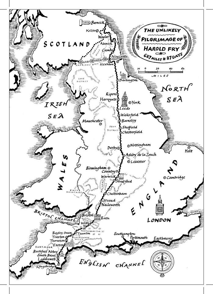 Harold pens a quick reply and, leaving Maureen to her chores, heads to the corner mailbox. But then, as happens in the very best works of fiction, Harold has a chance encounter, one that convinces him that he absolutely must deliver his message to Queenie in person. And thus begins the unlikely pilgrimage at the heart of Rachel Joyce’s remarkable debut. Harold Fry is determined to walk six hundred miles from Kingsbridge to the hospice in Berwick-upon-Tweed because, he believes, as long as he walks, Queenie Hennessey will live.