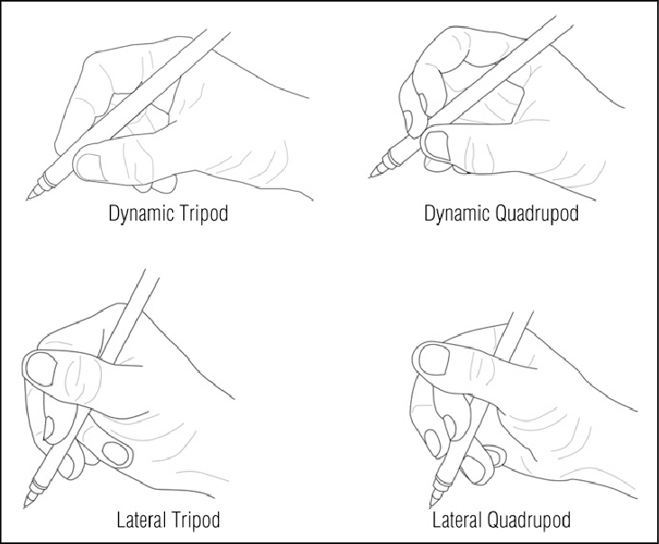 In doing research I’ve learned that there are more than a few different pencil grips, and that none of them cause legibility or speed problems (according to a 2001 study). Thanks a lot, D’Nealian guy! I still use the dynamic quadrupod grip, so sue me.